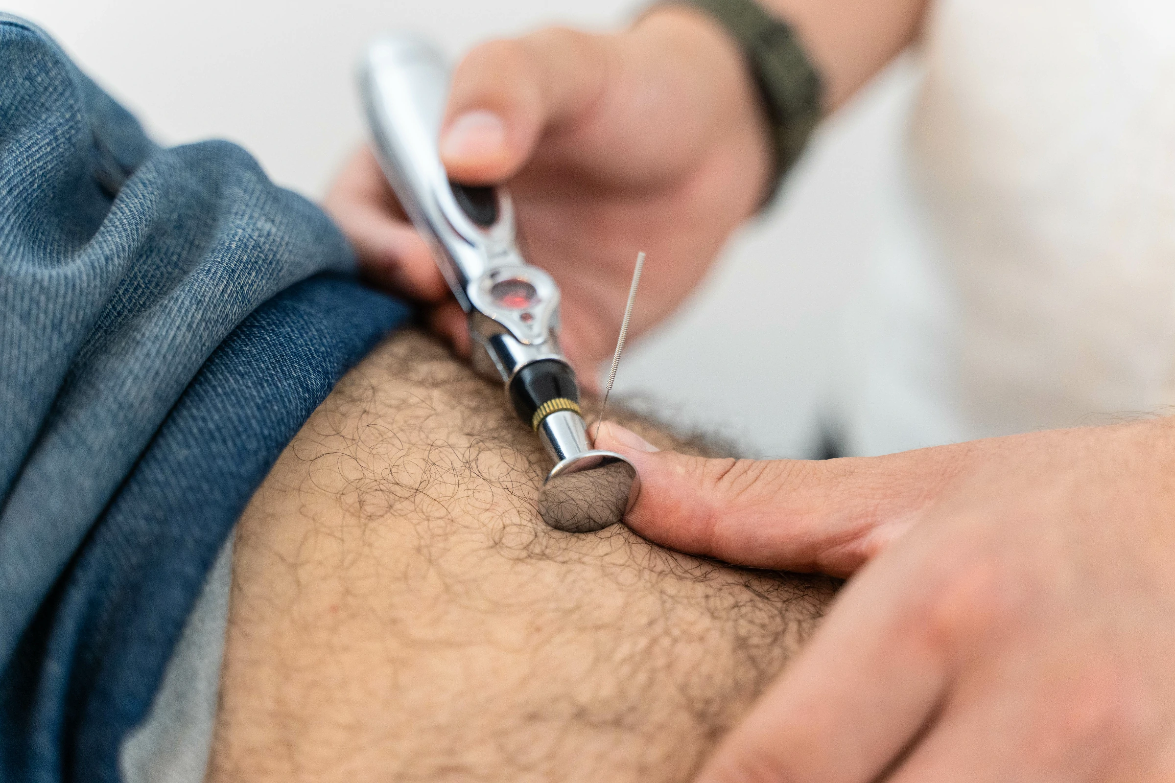 Una técnica avanzada y precisa. Mediante el uso de agujas, a través de las cuales aplicamos una corriente de baja frecuencia directamente sobre el trayecto del nervio periférico a abordar.